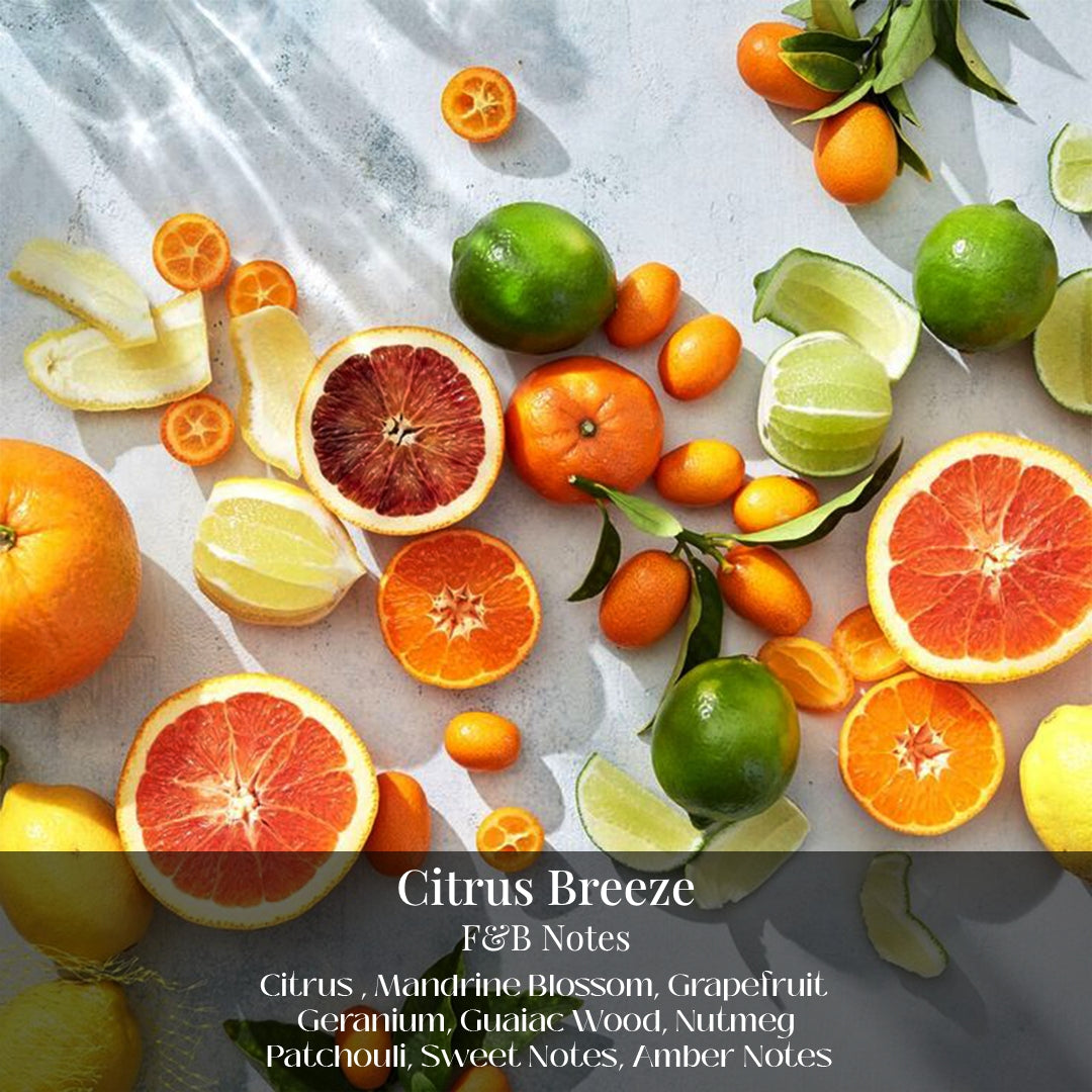 A vibrant blend of citrus, mandarin, grapefruit, and nutmeg infused with the warmth of guaiac wood, creating a refreshing and invigorating scent experience. Refresh your day.