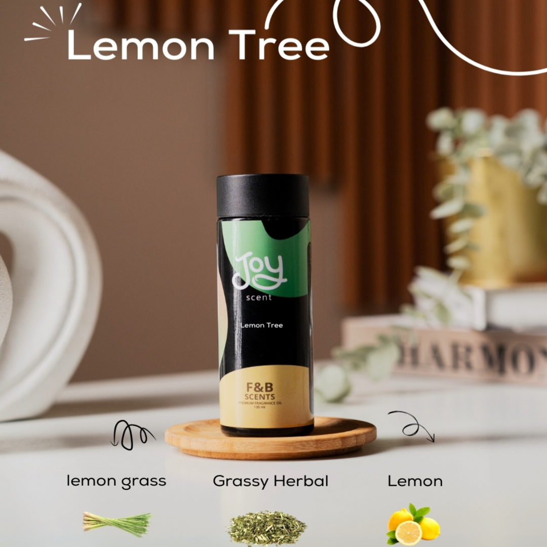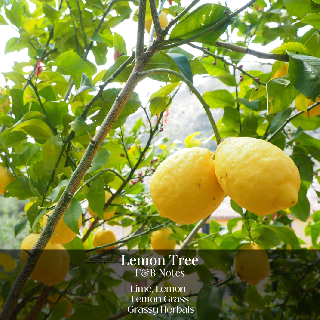 Lemon Tree is a vibrant, strong scent combining zesty lime, bright lemon, and fresh grassy herbs, evoking a lively and refreshing aroma.