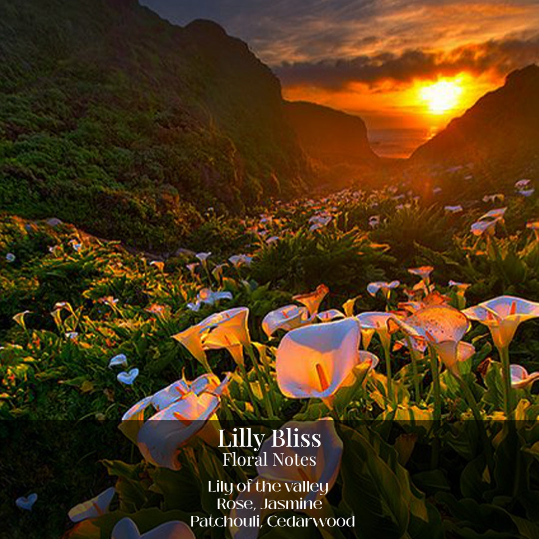 Embark on a sensory journey with Lily Bliss,Flirty elegance in a bottle, blending lily of the valley, rose, jasmine, patchouli, and a hint of cedar-wood for a captivating aroma that lingers delicately.