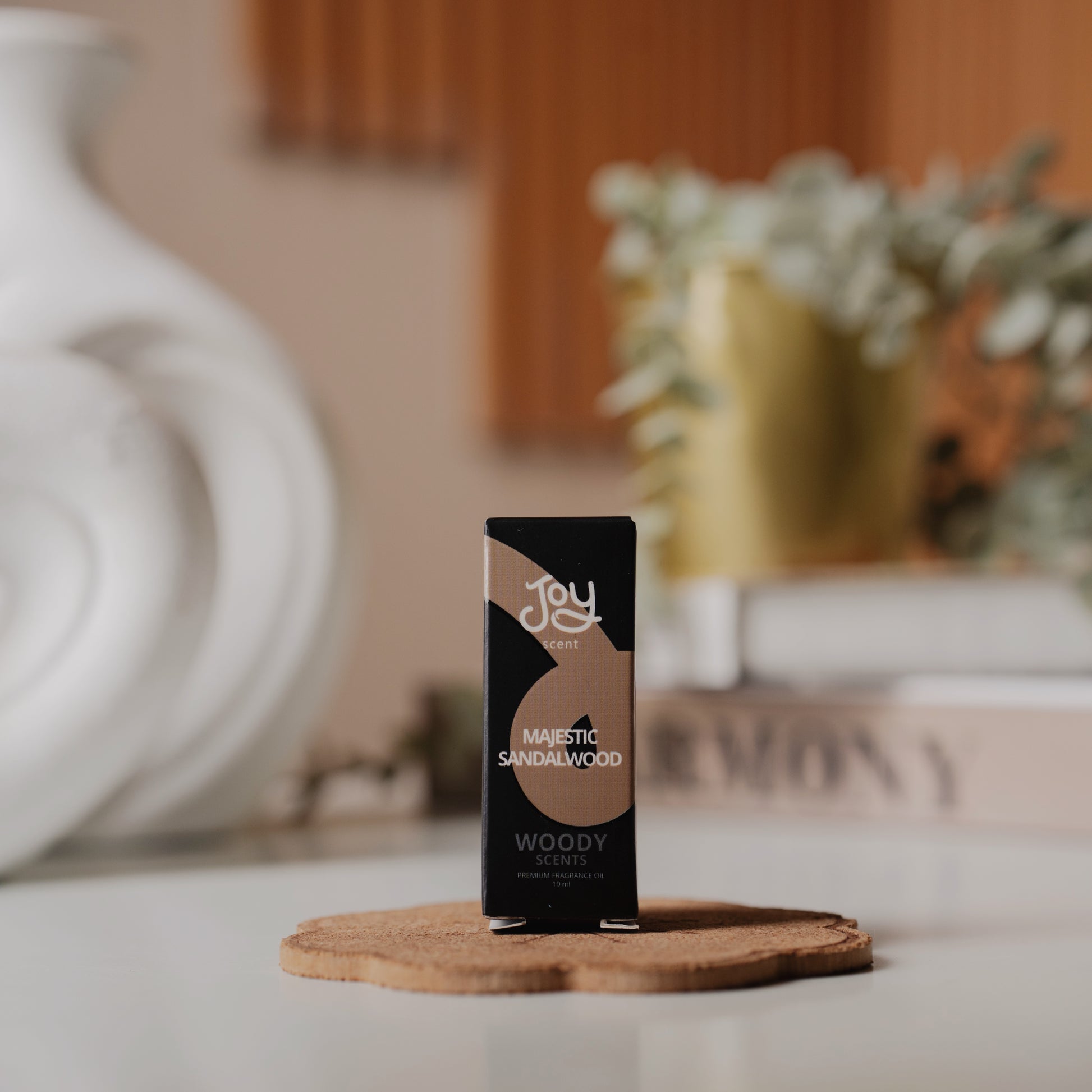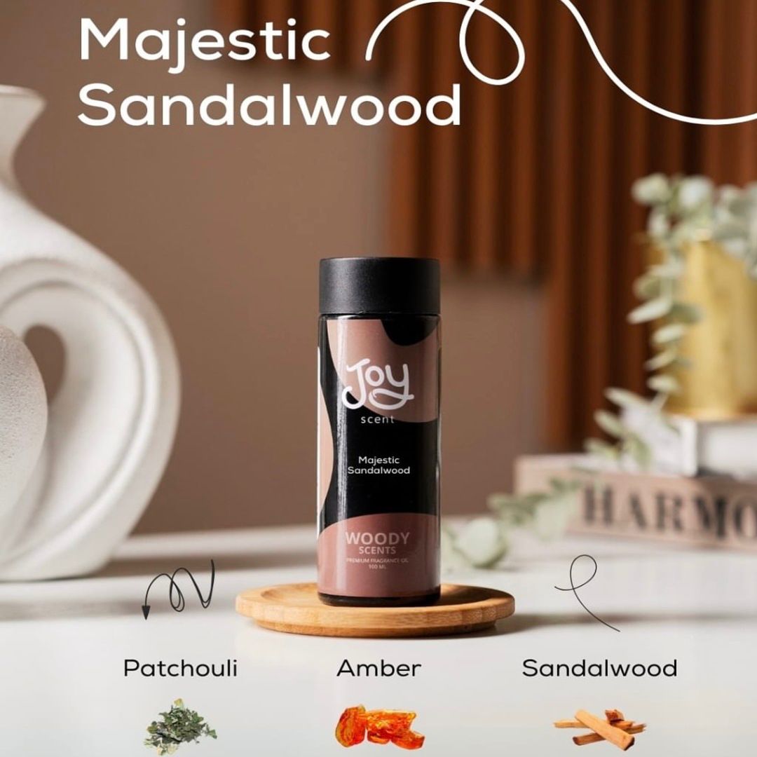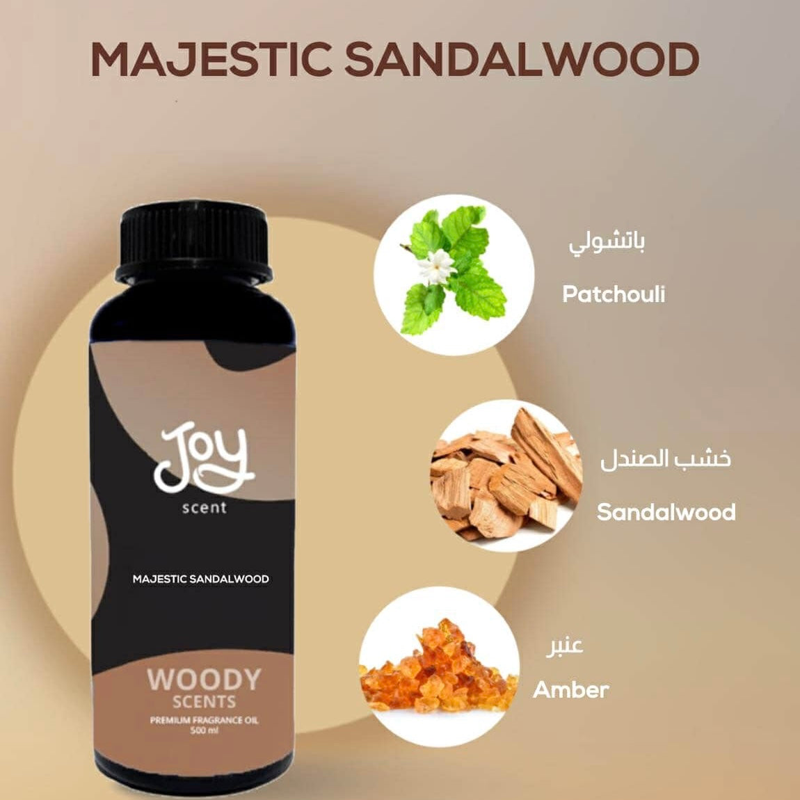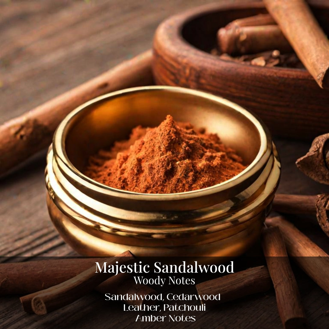 Majestic Sandalwood, exquisite fragrance intertwines the velvety richness of sandalwood and cedar-wood with the subtle warmth of leather and patchouli. A delicate hint of amber adds a touch of grandeur, enveloping you in an aura of sophistication and refinement that whispers of timeless elegance with every breath.